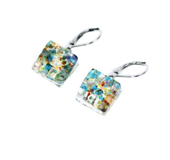 Boucles d’oreilles suspendues en verre, crochets en acier inoxydable (hypoallergénique).