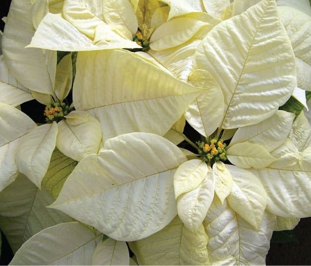 Tous nos poinsettias sont décorés avec des verdures de Noël, boucle et papier assorti