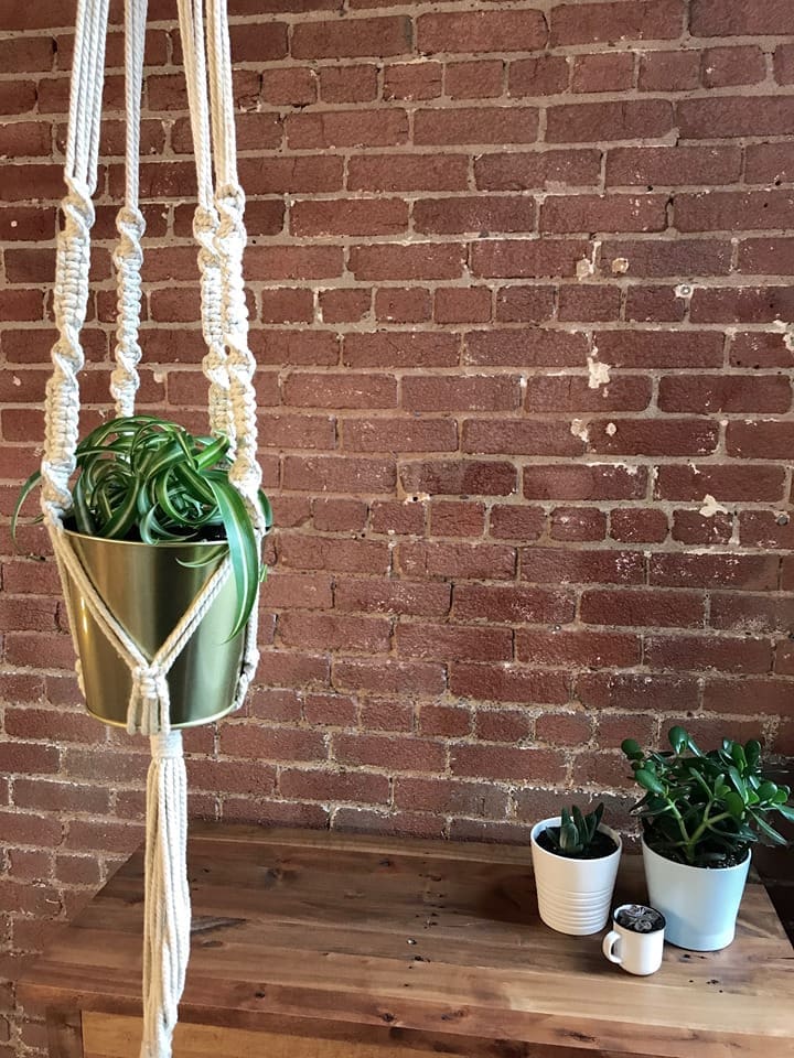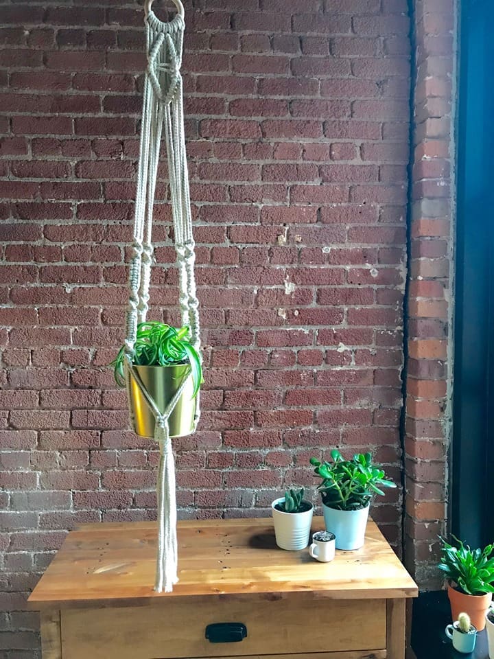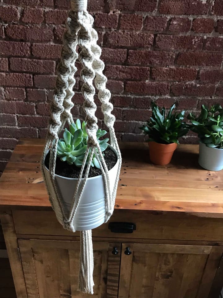 Les supports en macramé sont tous fabriqués à Granby!  Leurs styles et leurs longueurs varient d’un modèle à l’autre, ce qui leurs confère un caractère unique!